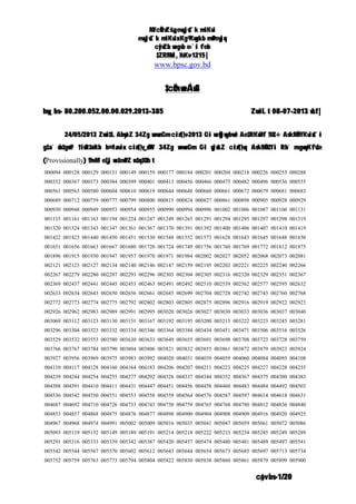 miKvi evsjv‡`k miKvix Kg© Kwgkb mwPevjq cyivZb wegvb e›`i feb ‡ZRMuvI, XvKv-1215| www.bpsc.gov.bd ‡cÖm weÁwß bw_ bs- 80.200.052.00.00.029.2013-385 ZvwiL t 08-07-2013 wLªt| 24/05/2013 Zvwi‡L AbywôZ 34Zg wewmGm cix¶v-2013 Gi wcÖwjwgbvwi Ae‡RKwUf †U‡÷ AskMÖnYKvix‡`i g‡a¨ wb‡gœv³ †iwR‡óªkb b¤^iavix cix¶v_x©MY 34Zg wewmGm Gi wjwLZ cix¶vq AskMÖn‡Yi Rb¨ mvgwqKfv‡e (Provisionally) †hvM¨ e‡j we‡ewPZ n‡q‡Qb t 000094 000128 000129 000131 000149 000159 000177 000184 000201 000204 000218 000226 000255 000288 000352 000367 000373 000384 000399 000401 000413 000456 000466 000475 000482 000496 000536 000555 000561 000563 000580 000604 000610 000619 000644 000648 000660 000661 000672 000679 000681 000683 000689 000712 000759 000777 000799 000800 000815 000824 000827 000861 000898 000905 000928 000929 000930 000948 000949 000953 000954 000955 000990 000994 000996 001002 001006 001087 001106 001131 001135 001161 001163 001194 001224 001247 001249 001265 001291 001294 001295 001297 001298 001319 001320 001324 001343 001347 001361 001367 001370 001391 001392 001400 001406 001407 001410 001419 001422 001423 001440 001450 001451 001530 001548 001552 001573 001628 001643 001645 001648 001650 001651 001656 001663 001667 001680 001720 001724 001749 001756 001760 001769 001772 001812 001875 001896 001915 001930 001947 001957 001970 001971 001984 002002 002027 002052 002068 002073 002081 002121 002123 002127 002134 002140 002146 002147 002159 002195 002202 002221 002225 002240 002266 002267 002279 002280 002287 002293 002296 002303 002304 002305 002316 002320 002329 002351 002367 002369 002437 002441 002445 002453 002463 002491 002492 002510 002539 002562 002577 002595 002632 002633 002634 002643 002650 002656 002661 002685 002699 002704 002728 002742 002743 002760 002768 002772 002773 002774 002775 002792 002802 002803 002805 002875 002896 002916 002919 002922 002923 002926 002962 002983 002989 002991 002995 003020 003026 003027 003030 003033 003036 003037 003040 003069 003112 003123 003130 003151 003167 003192 003195 003200 003215 003222 003223 003245 003281 003296 003304 003323 003332 003334 003346 003364 003384 003434 003451 003471 003506 003516 003526 003529 003532 003553 003580 003630 003633 003649 003655 003691 003698 003708 003723 003728 003759 003766 003767 003784 003790 003804 003806 003821 003832 003855 003861 003872 003879 003923 003924 003927 003956 003969 003975 003983 003992 004020 004031 004039 004059 004060 004084 004095 004108 004110 004117 004128 004160 004164 004183 004206 004207 004211 004223 004225 004227 004228 004235 004239 004244 004254 004255 004277 004292 004326 004337 004344 004352 004367 004375 004380 004383 004388 004391 004410 004411 004431 004447 004451 004456 004458 004460 004483 004484 004492 004503 004536 004542 004550 004551 004553 004558 004559 004564 004576 004587 004597 004614 004618 004631 004687 004692 004710 004726 004733 004743 004750 004759 004765 004768 004780 004812 004836 004840 004853 004857 004868 004875 004876 004877 004898 004900 004904 004908 004909 004916 004920 004925 004967 004968 004974 004991 005002 005009 005016 005035 005041 005047 005059 005061 005072 005086 005093 005119 005132 005149 005189 005191 005214 005218 005222 005233 005234 005245 005249 005289 005291 005316 005333 005339 005342 005387 005420 005457 005474 005480 005481 005489 005497 005541 005542 005544 005567 005570 005602 005612 005643 005644 005654 005673 005685 005697 005713 005734 005752 005759 005763 005773 005794 005804 005822 005830 005838 005860 005861 005879 005899 005900