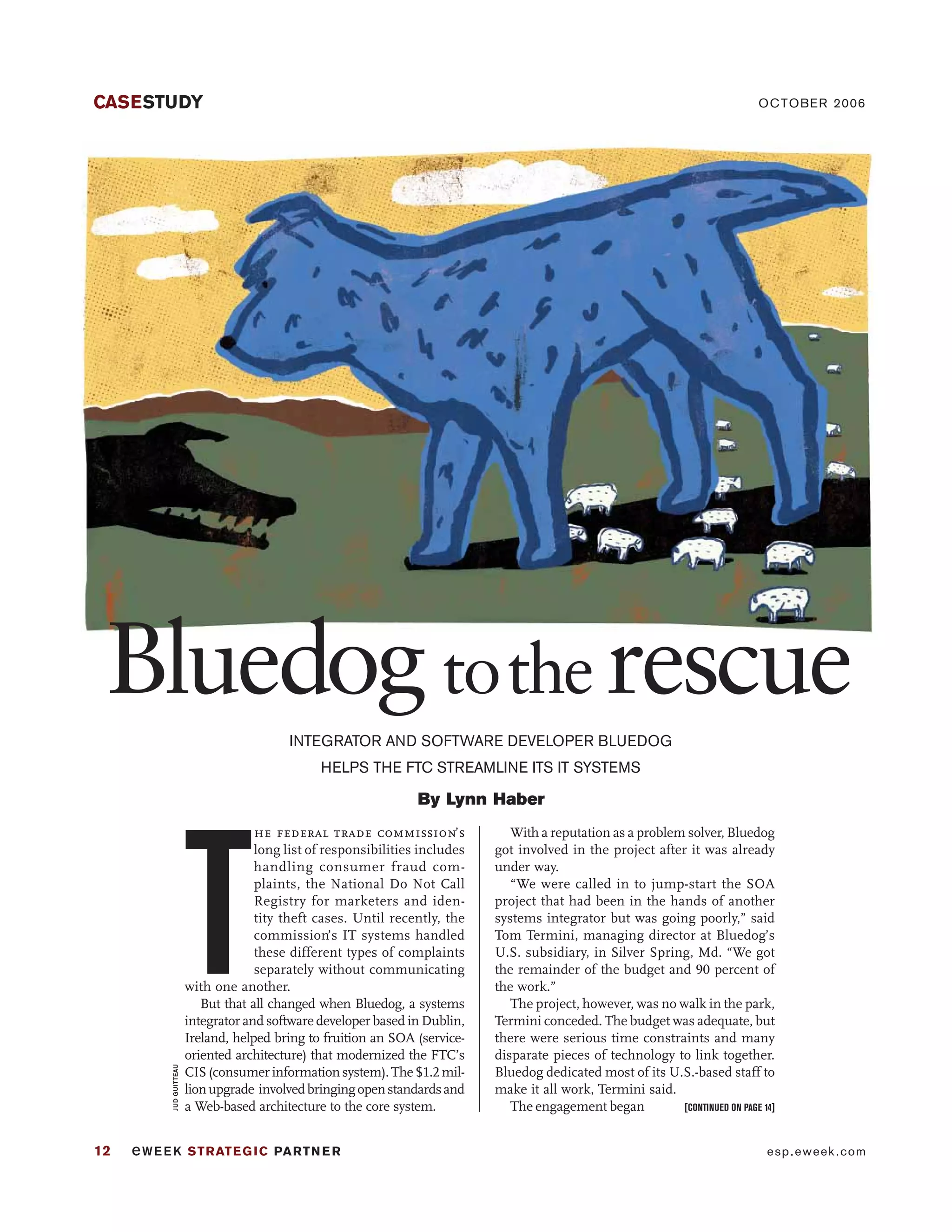 Bluedog, a systems integrator, modernized the FTC's IT systems by implementing a service-oriented architecture (SOA) for its consumer information system, which previously operated with outdated client/server technology. The $1.2 million project enhanced scalability, data management, and inter-agency access over a ten-month period, enabling the FTC to efficiently handle consumer fraud complaints and identity theft cases. As a result of this upgrade, the FTC has been able to process a growing number of daily complaints and is now considering future IT solutions based on the success of the SOA implementation.