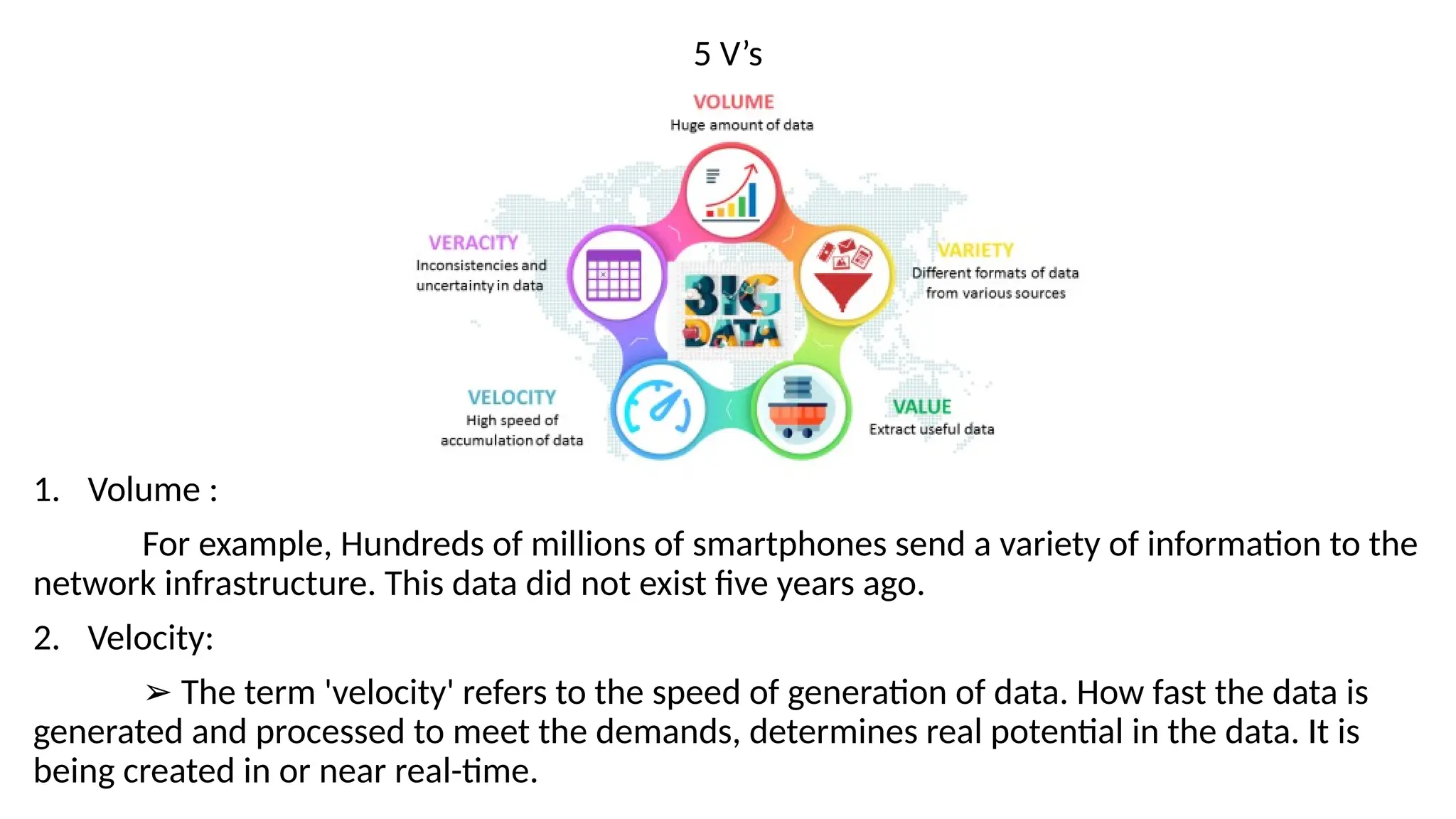 The document elaborates on the 5 V's of big data: volume, velocity, variety, value, and veracity, highlighting their importance in generating insights and business value. It explains the significance of structured and unstructured data, the role of big data technology and tools like Hadoop for data processing, as well as how digital marketing leverages big data for customer insights. Additionally, it discusses cloud computing, open source technologies, and mobile business intelligence as crucial components in the overarching big data ecosystem.