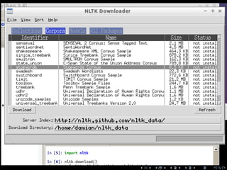 The document discusses the use of regular expressions (regexp) and natural language processing (NLP) for automated content analysis. It elaborates on the differences between bottom-up and top-down approaches in analyses, provides examples of using regex in Python, and covers techniques such as stopword removal and stemming. Further, it explains the importance of parsing sentences to derive grammatical functions and meanings from text.