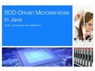 The document discusses testing approaches for microservices, including unit tests, integration tests, and end-to-end tests. It advocates for an outside-in development approach using behavior-driven development (BDD) with automated tests written at multiple levels to ensure software delivers expected functionality. BDD involves collaboratively defining requirements as structured scenarios to guide development and act as executable tests.