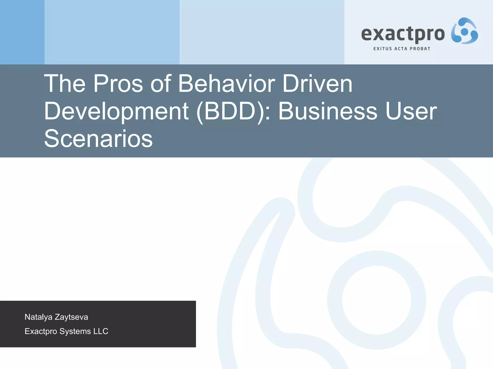 The document discusses the pros and cons of behavior driven development (BDD). It outlines some benefits of BDD such as collaboration between teams, use of ubiquitous language, and business user scenarios. However, it also notes some challenges with BDD including difficulty getting customers involved in writing scenarios and representing real-life complex systems with scenarios. The document provides examples of BDD scenarios and considerations around developer readiness and using BDD throughout the development process and product release.