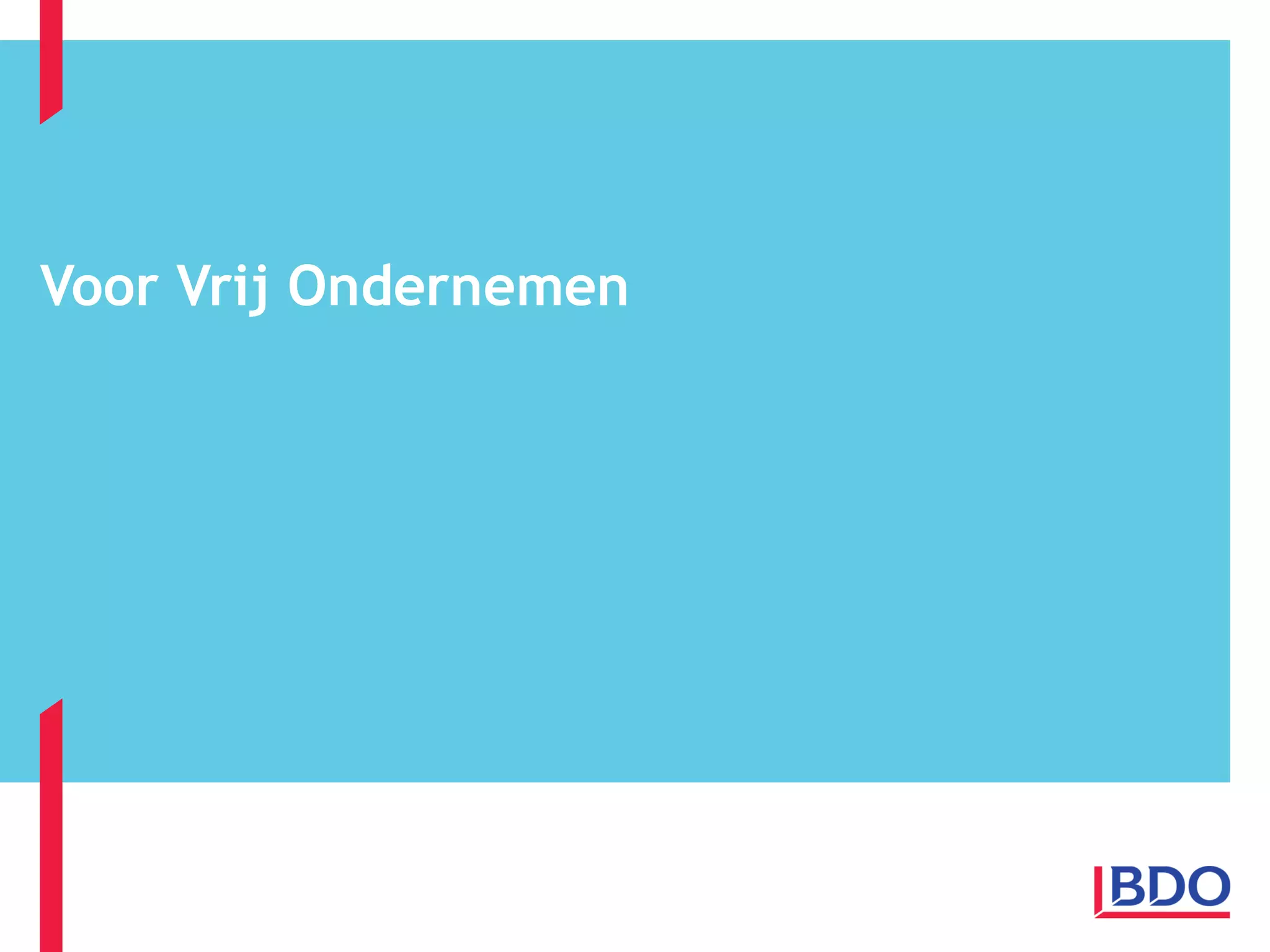 BDO, VOOR VRIJONDERNEMEN! Wij bevrijden u van lastig cijferwerk en knellende regels, zodat u zich volledig kunt richten op het ondernemen. Page