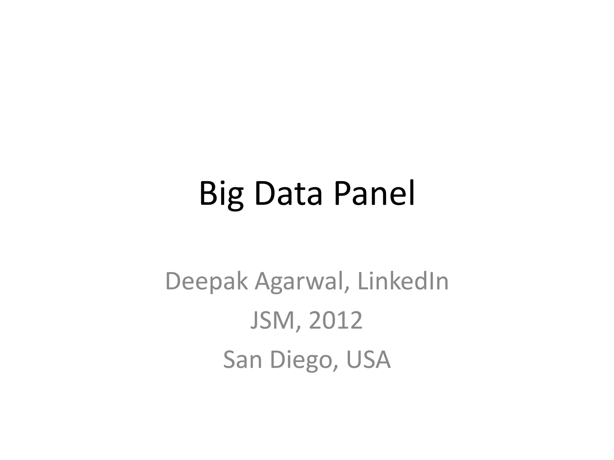 This document summarizes a panel discussion on big data challenges. It outlines key statistical challenges like exploratory data analysis on terabytes of data, modeling high-dimensional data with many interacting variables, running experiments at scale, and forecasting. It also emphasizes that big data problems require multi-disciplinary solutions and statisticians should leverage tools from fields like machine learning while focusing on statistical aspects such as sampling and experiment design.