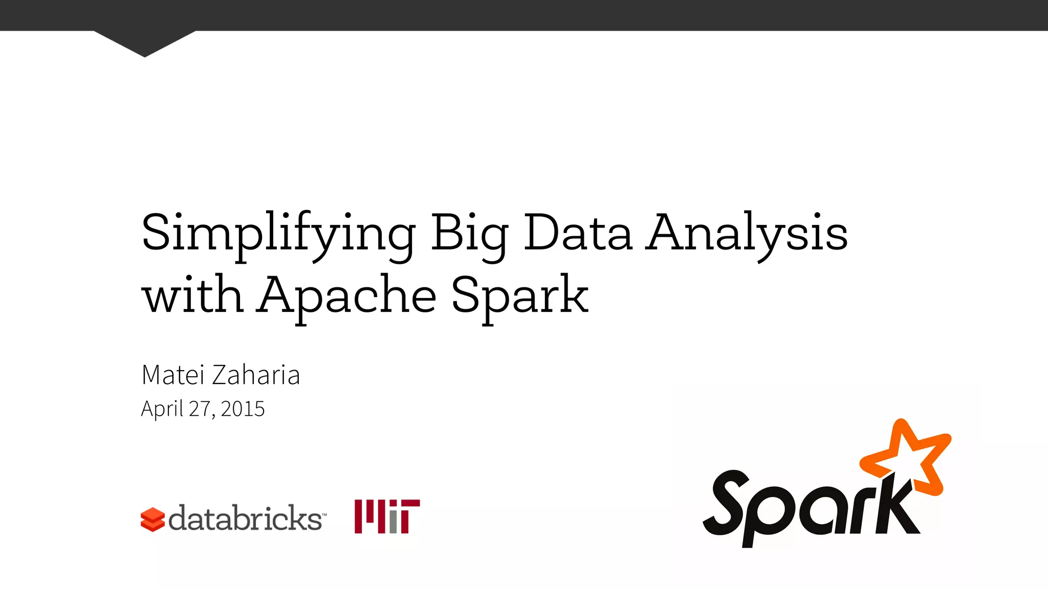 Apache Spark is a fast and general-purpose cluster computing system for large-scale data processing. It improves on MapReduce by allowing data to be kept in memory across jobs, enabling faster iterative jobs. Spark consists of a core engine along with libraries for SQL, streaming, machine learning, and graph processing. The document discusses new APIs in Spark including DataFrames, which provide a tabular interface like in R/Python, and data sources, which allow plugging external data systems into Spark. These changes aim to make Spark easier for data scientists to use at scale.