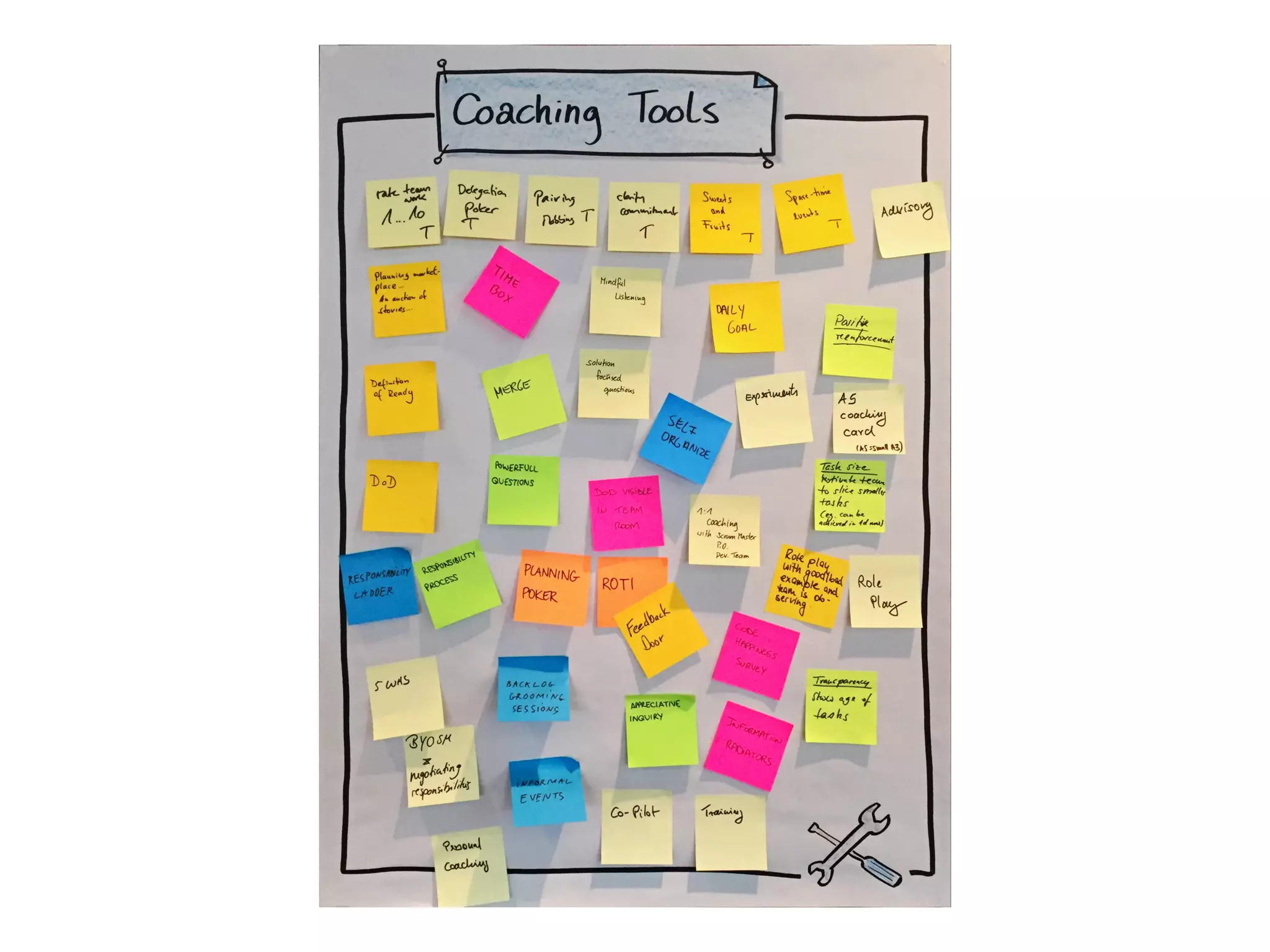 The document outlines an approach for agile coaching using observations, hypotheses, goals, metrics, and tools. It describes a coaching card structure where the coach first makes observations about a team's behavior. They then formulate hypotheses about potential reasons for that behavior and define a desired goal. Metrics and indicators are identified to measure progress toward the goal. Finally, coaching tools are selected to encourage behavioral change. This coaching card approach can be expanded into a coaching structure when working with multiple teams or coaches within an organization.