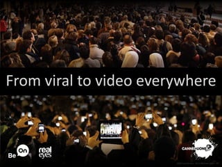 The document discusses the evolution of video content consumption from 2005 to 2016, highlighting trends in video uploads, user engagement, and the effectiveness of different video formats. It emphasizes the importance of emotional content in increasing viewer retention and interaction rates, and the shift from quantity to quality in content visibility across platforms like YouTube and Facebook. Furthermore, it outlines how advertisers can leverage these insights for improved engagement and brand favorability.
