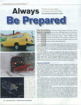 An article Published by Retail Facility Business, France Publications, suggesting that Facility Professionals when inspecting their facilities should be proative and check vulnerable areas for potential disasters.