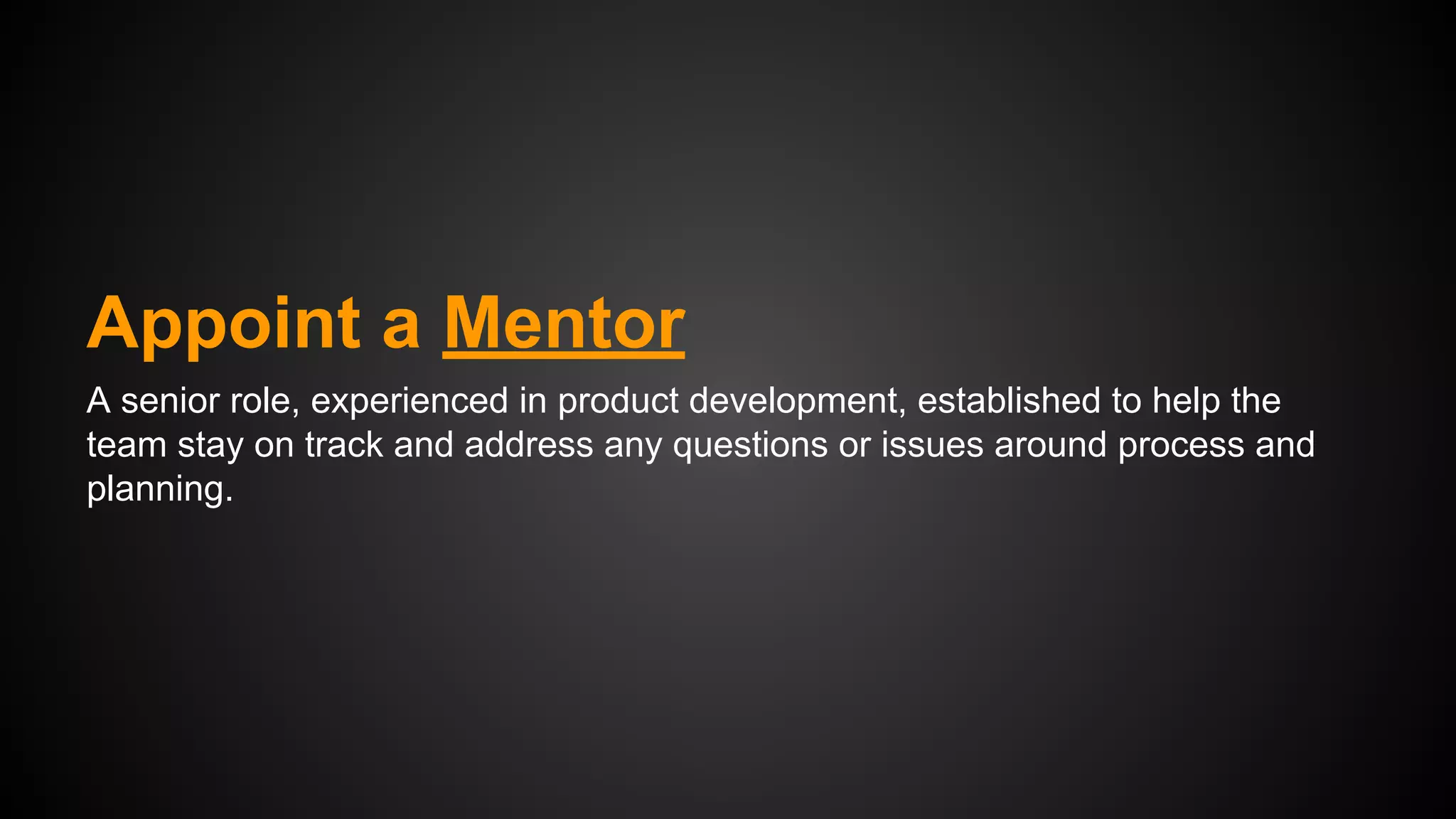 The document outlines a structured approach for product development within an agency, emphasizing the importance of appointing a mentor and organizing various specialized teams. It details roles and responsibilities for management, interface, integration, and system teams, while also highlighting iterative methodologies and the value of team co-location. Additionally, it includes guidance on planning milestones and budgeting for projects.