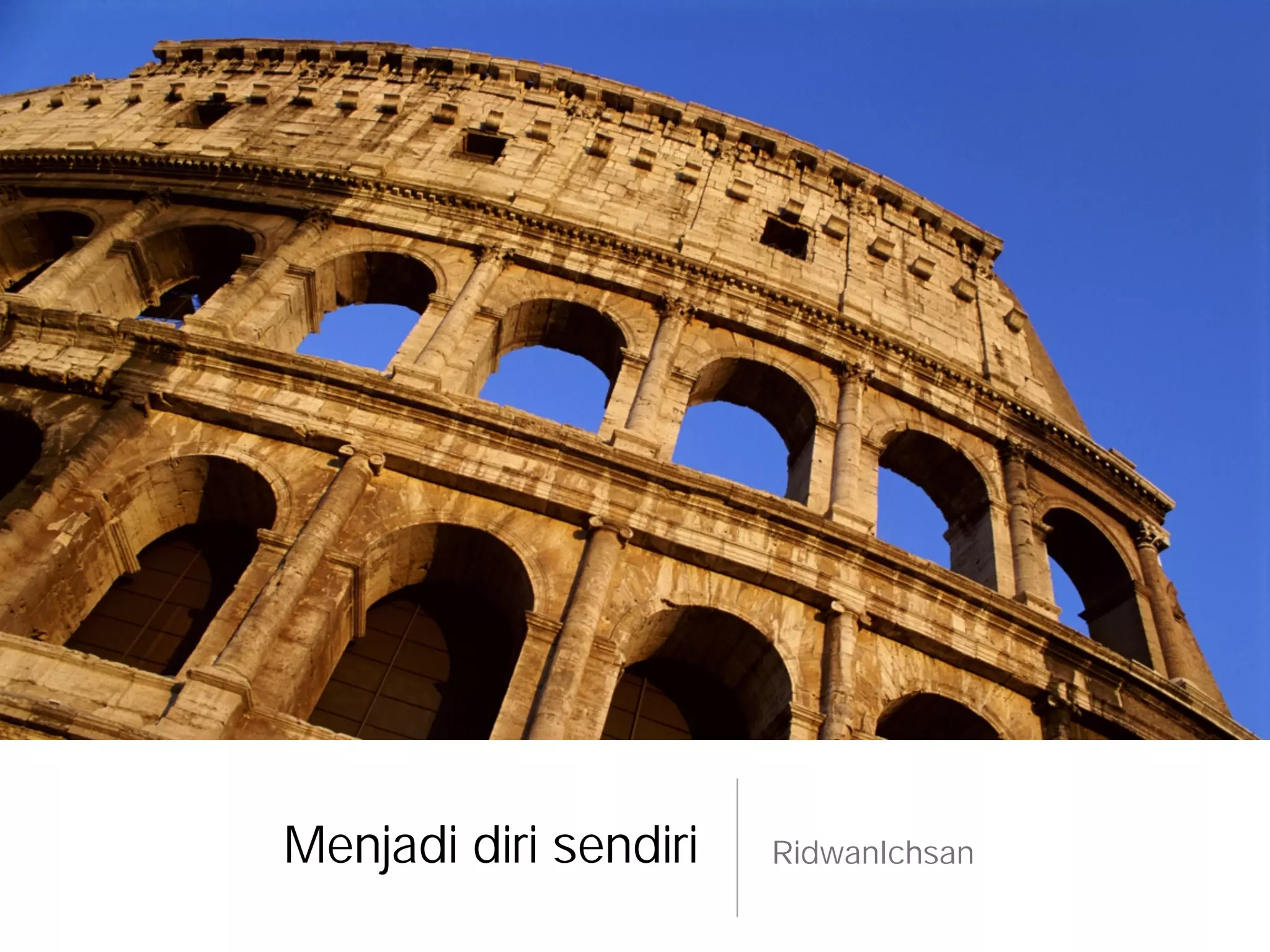 Dokumen ini menekankan pentingnya menjadi diri sendiri dan mengakui keunikan masing-masing individu. Setiap orang memiliki takdir dan jalan hidup yang berbeda, dan penting untuk berdamai dengan diri sendiri agar bisa menghargai perbedaan sebagai sesuatu yang istimewa. Mengikuti arus mainstream bukanlah solusi, karena setiap orang harus menyadari nilai keunikan mereka.