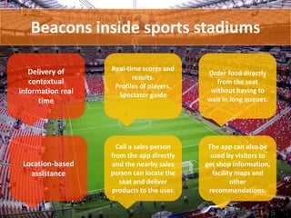 Proximity technology in stadiums utilizes beacons to deliver real-time contextual information, enhance visitor experiences, and streamline services such as food ordering and navigation. Venue owners can capitalize on customer insights and targeted marketing, while fans benefit from features like social media sharing, immediate feedback, and the ability to locate facilities easily. Predictive analytics and heat maps are employed to optimize visitor management, enhance staff productivity, and improve marketing strategies.