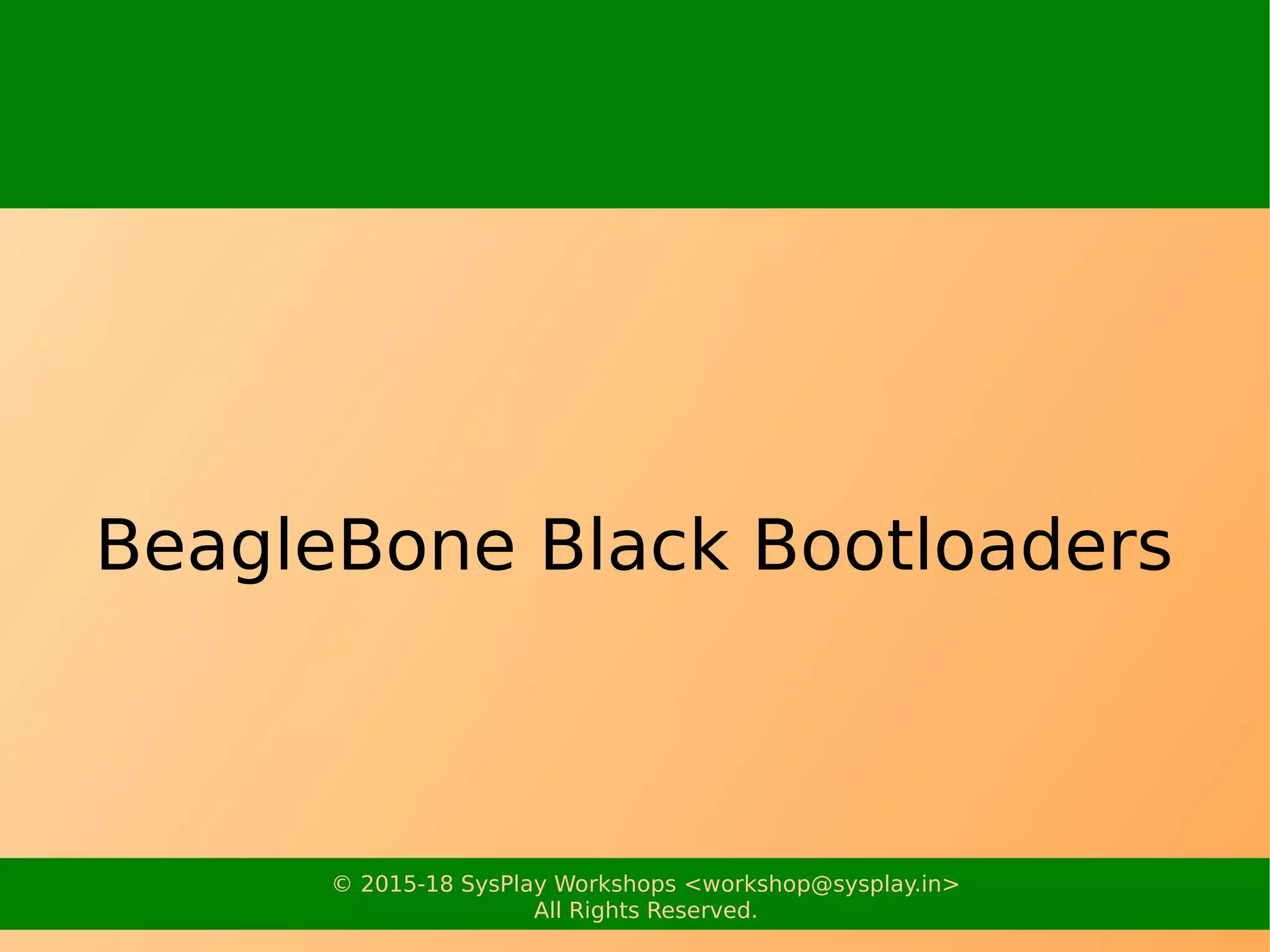 The document discusses the bootloaders for the BeagleBone Black. It covers the memory organization of the BBB, the booting process, and details about the X-Loader and U-Boot bootloaders. The X-Loader is the first stage bootloader that loads U-Boot from internal memory. U-Boot then loads and boots the Linux kernel from external memory. Both bootloaders have board support for the BBB through board-specific configuration and initialization code.