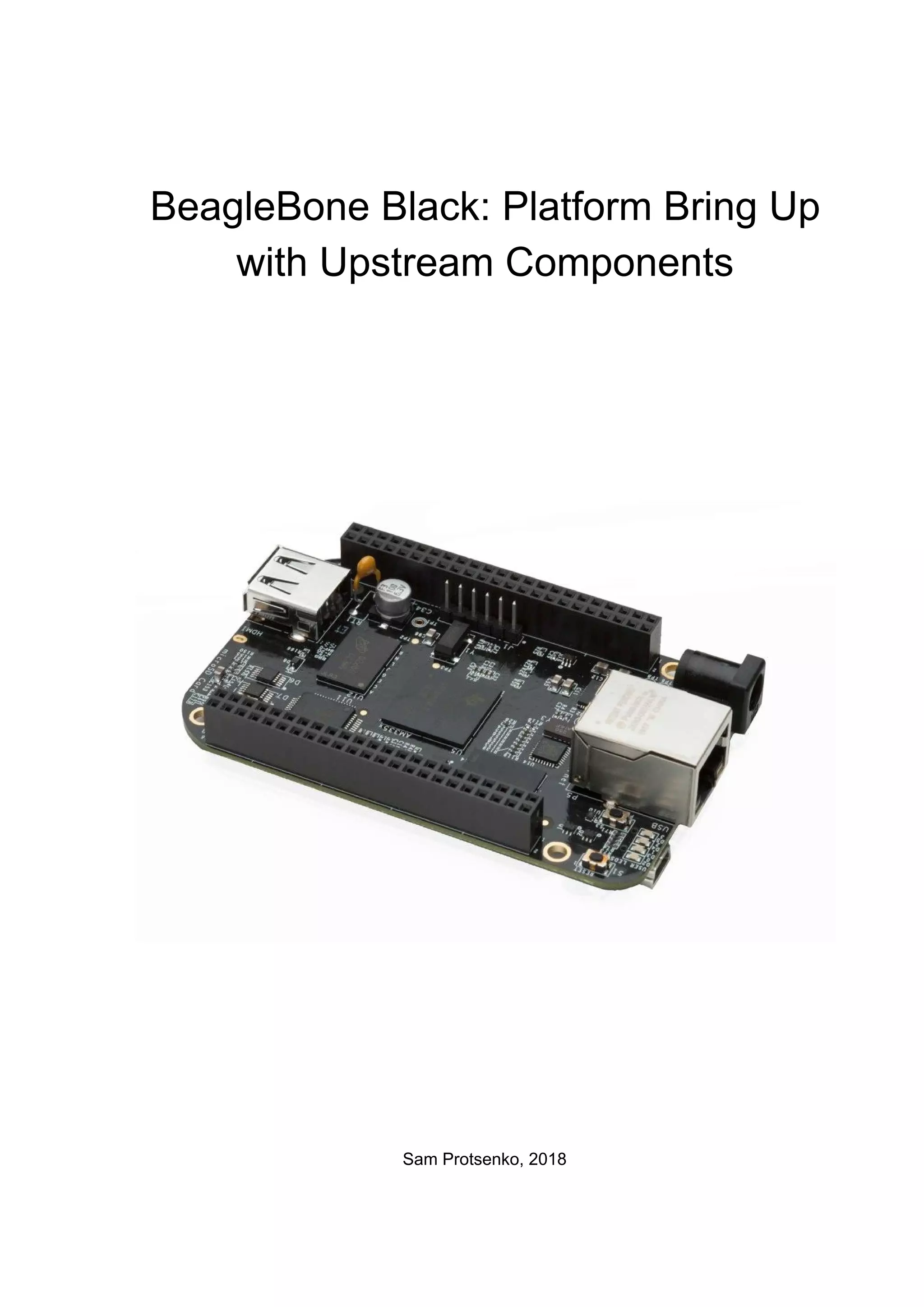 This document provides comprehensive instructions for obtaining, building, and flashing upstream software on the BeagleBone Black (BBB) board, making it suitable for training C/embedded/kernel developers. It covers setup requirements, toolchain configurations, and discusses key components such as U-Boot, Linux kernel, and BusyBox. The guide emphasizes the importance of using upstream software for understanding community structures and facilitating future contributions.