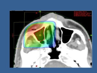 This document discusses various beam modifying devices used in radiation oncology. It describes shielding blocks, custom blocks made of cerrobend, independent jaws, multi-leaf collimators, compensators, wedge filters, and bolus. Shielding blocks are used to protect critical structures while custom blocks can be molded to any shape needed. Compensators are used to even out skin surface contours and account for tissue heterogeneity. Wedge filters produce a tilt in the dose distribution. Multi-leaf collimators allow for dynamic shaping of treatment fields. The document provides details on the composition, placement, and design of these various beam modifying devices.