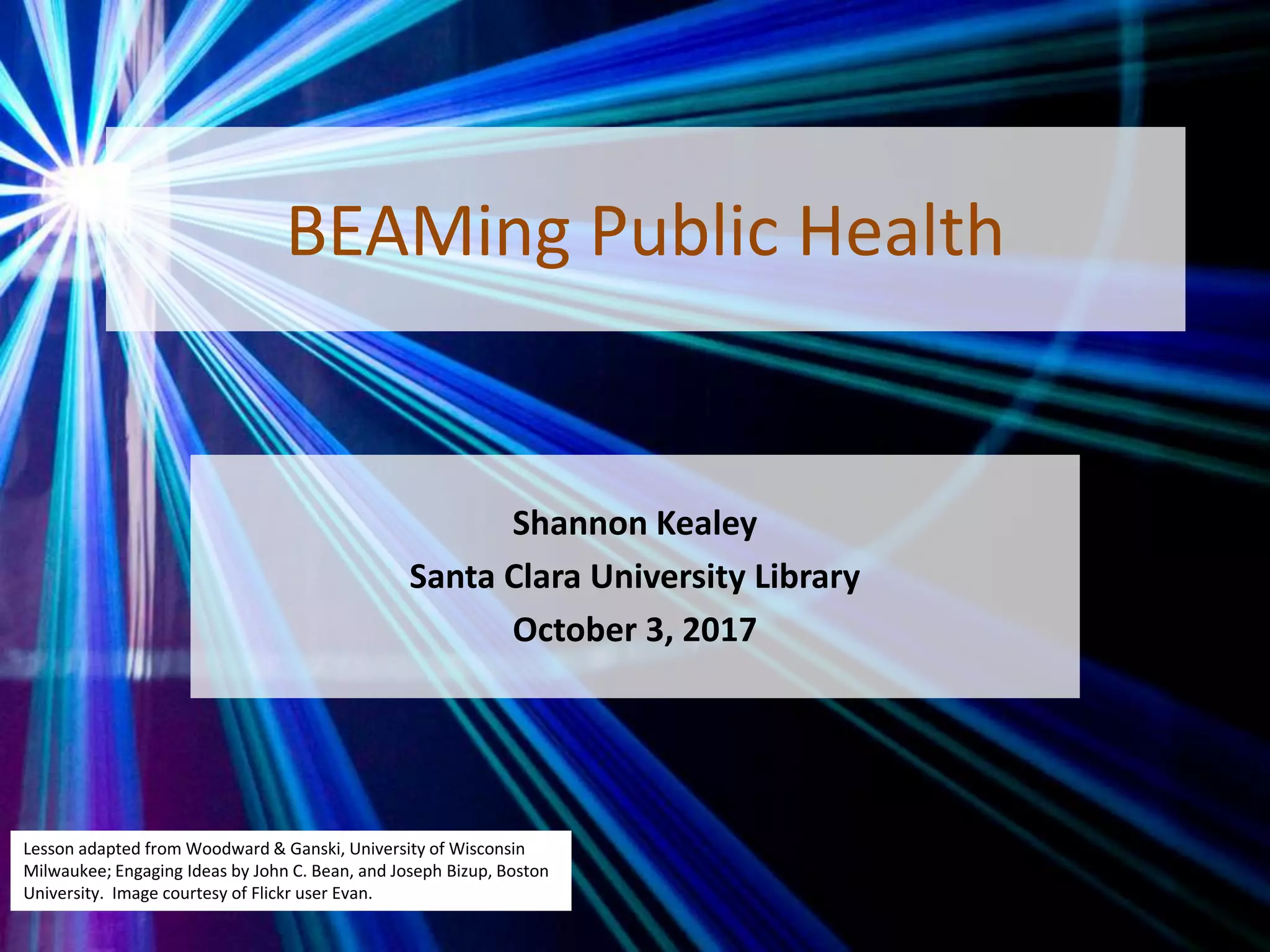 The document outlines the BEAM method for categorizing sources to develop a research topic in public health. BEAM stands for Background, Exhibit/Evidence, Argument, and Method. Each category is defined and examples are provided of the types of sources that would fit into each category. The document then provides guidance on using the BEAM method to brainstorm a research topic and find relevant sources.