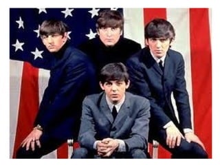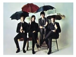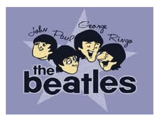 The document provides a quiz about The Beatles with questions about where they were born, the instruments they played, their stage names prior to becoming The Beatles, their full names, the order they joined the band, their manager Brian Epstein, the year of their first visit to the US, and the movies they made. It also includes song lyrics from "Rocky Raccoon" and discusses the use of participle clauses in the song "She's Leaving Home".