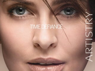 The document provides an overview of Artistry, a global leader in prestige beauty products. It discusses Artistry's high-tech development and production processes. It also summarizes Artistry's scientific breakthroughs and product ranges, including their daily care and weekly care routines. The daily care routines include hydrating and balancing skin care systems tailored for different skin types. The weekly care includes products for exfoliating, massaging, and moisturizing the skin.