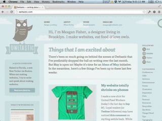 The document outlines essential guidance for aspiring web designers, including the skills and experiences necessary for success in the field. It emphasizes the importance of collaboration, understanding design principles, and the advantages of coding knowledge for efficient design execution. Additionally, it advocates for continuous learning, feedback, and creativity in the design process.