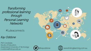 The document discusses the concept of Personal Learning Networks (PLNs) and their role in transforming professional learning for educators. It emphasizes the importance of social learning, self-directed learning, and active participation in online networks to enhance professional development and knowledge sharing. The author underscores that the effectiveness of a PLN is determined by the quality of interactions rather than the quantity of connections.