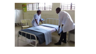 The document outlines the importance of bed making in nursing, emphasizing its role in ensuring patient comfort, safety, and hygiene. It describes various types of beds and their specific purposes, as well as the general instructions and responsibilities nurses must follow during the bed making process. Additionally, it covers the scientific principles behind bed making, including anatomy, microbiology, and psychology, to enhance patient care.