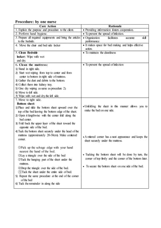 3) Proper bed making aims to provide a clean, wrinkle-free surface to prevent pressure sores and reduce infection risk for patients.