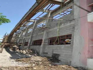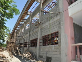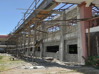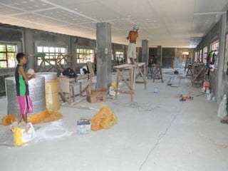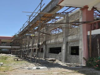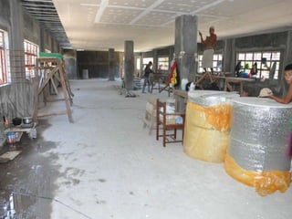 The document discusses a library that is under construction. The Basic Education Department Library is currently being built and renovated. Limited information is provided about the library project as it is still in progress.