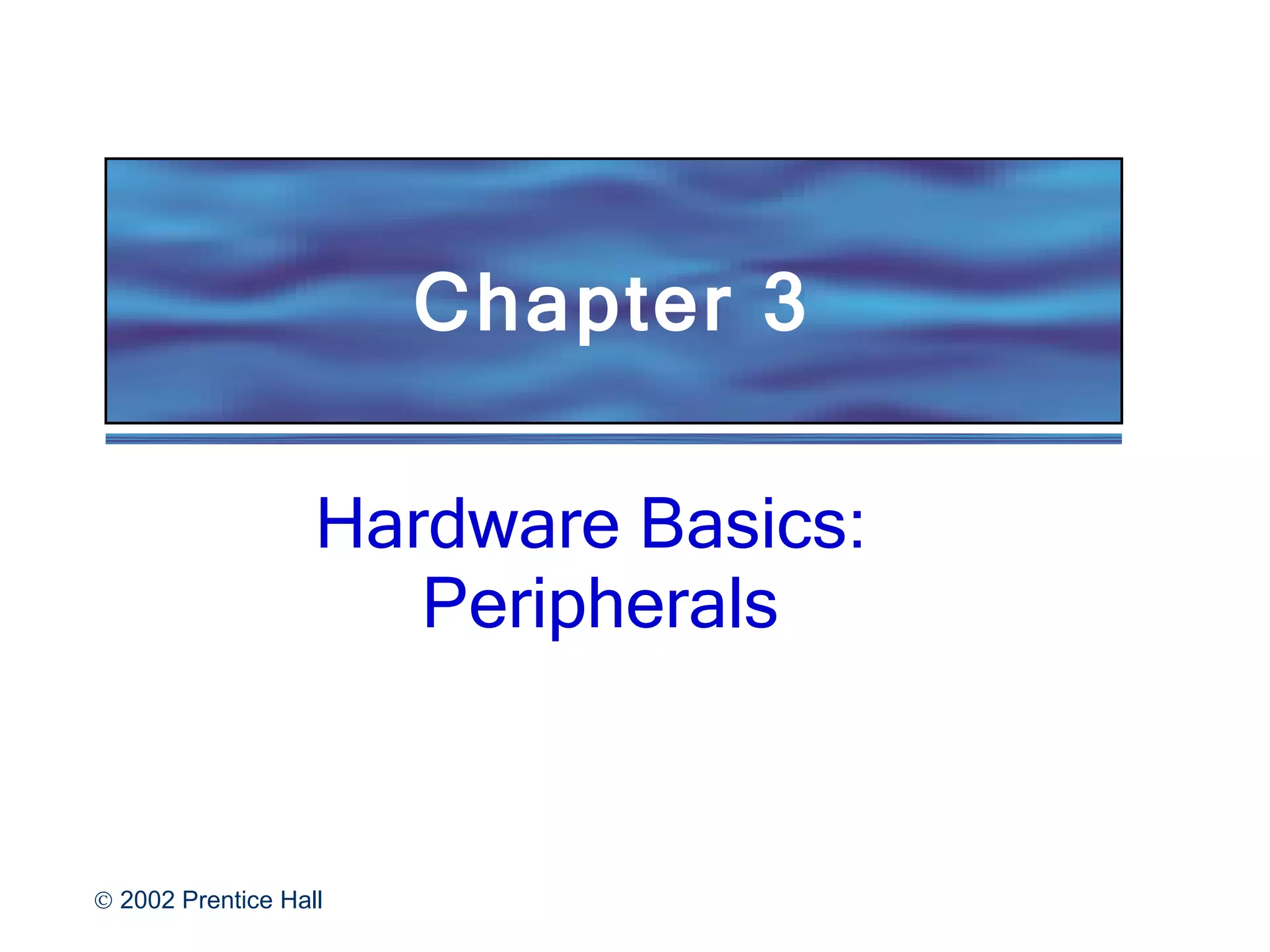 The document provides an overview of computer hardware basics including input, output, and storage devices. It describes common input devices like keyboards and pointing devices. It discusses output to screens, printers, and other devices. It also covers various storage media including magnetic disks, tapes, and optical disks. The document emphasizes that computer systems integrate various input, output, and storage peripherals and that networks allow sharing of resources between multiple computers.
