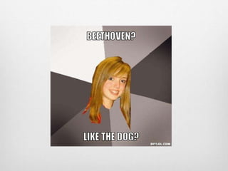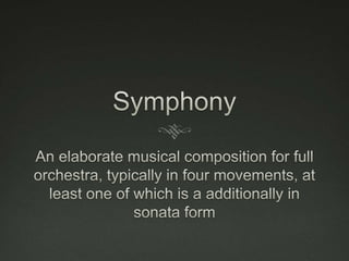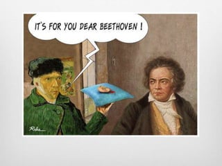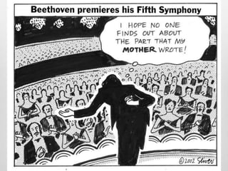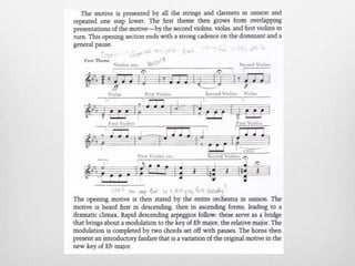 Vienna is known as the Music Capital of Europe due to its rich musical history and legacy. The document discusses Ludwig van Beethoven, a pivotal figure in classical music, and provides background on his life experiences and struggles with deafness. It then analyzes his iconic 5th Symphony in detail, describing its composition process, structure in four movements employing sonata form, and use of rhythmic motifs and instrumentation to convey dramatic tension and resolution.