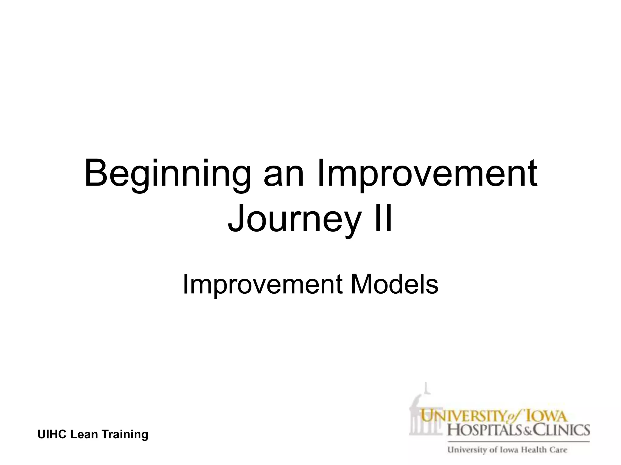 This document discusses various improvement models and approaches that can be used to enhance processes and quality, including Lean, Six Sigma, Toyota Production System, Theory of Constraints, and PDSA cycles. It explains that the most appropriate model depends on the goals of the improvement, the organization's maturity level, and available resources. Key aspects covered include using small tests of change to reduce risk, empowering teams, and focusing on incremental daily improvements in addition to discrete projects and events. The overall message is that multiple models can be effective and it's important to match the approach to the specific situation.