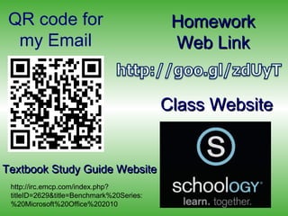 This document provides information about a Beginning Office class taught by Mrs. Wei. It includes her contact information, the class website link, textbook information, and an overview of Mrs. Wei's background and the classes she teaches. It outlines expectations for students, the grading policy, required materials, projects and assessments. It also details class rules, lab policies, and how to contact the instructor.