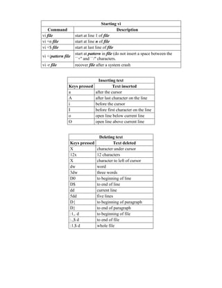 3. Insert, delete, change, and replace text using commands like i, a, dd, cw, s, and ~.