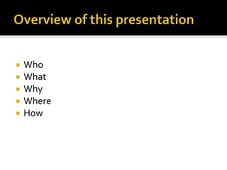 The document provides an overview of Behat, a tool for Behavior Driven Development (BDD) aimed at developers, project managers, and agile users. It explains that Behat enables writing tests in Gherkin, a business-readable domain-specific language, and emphasizes its benefits for writing clearer tests, improving code quality, and enhancing communication with non-technical stakeholders. Additionally, it highlights Behat's integration with Drupal, making it a vital asset for Drupal developers to maintain functionality while updating versions.