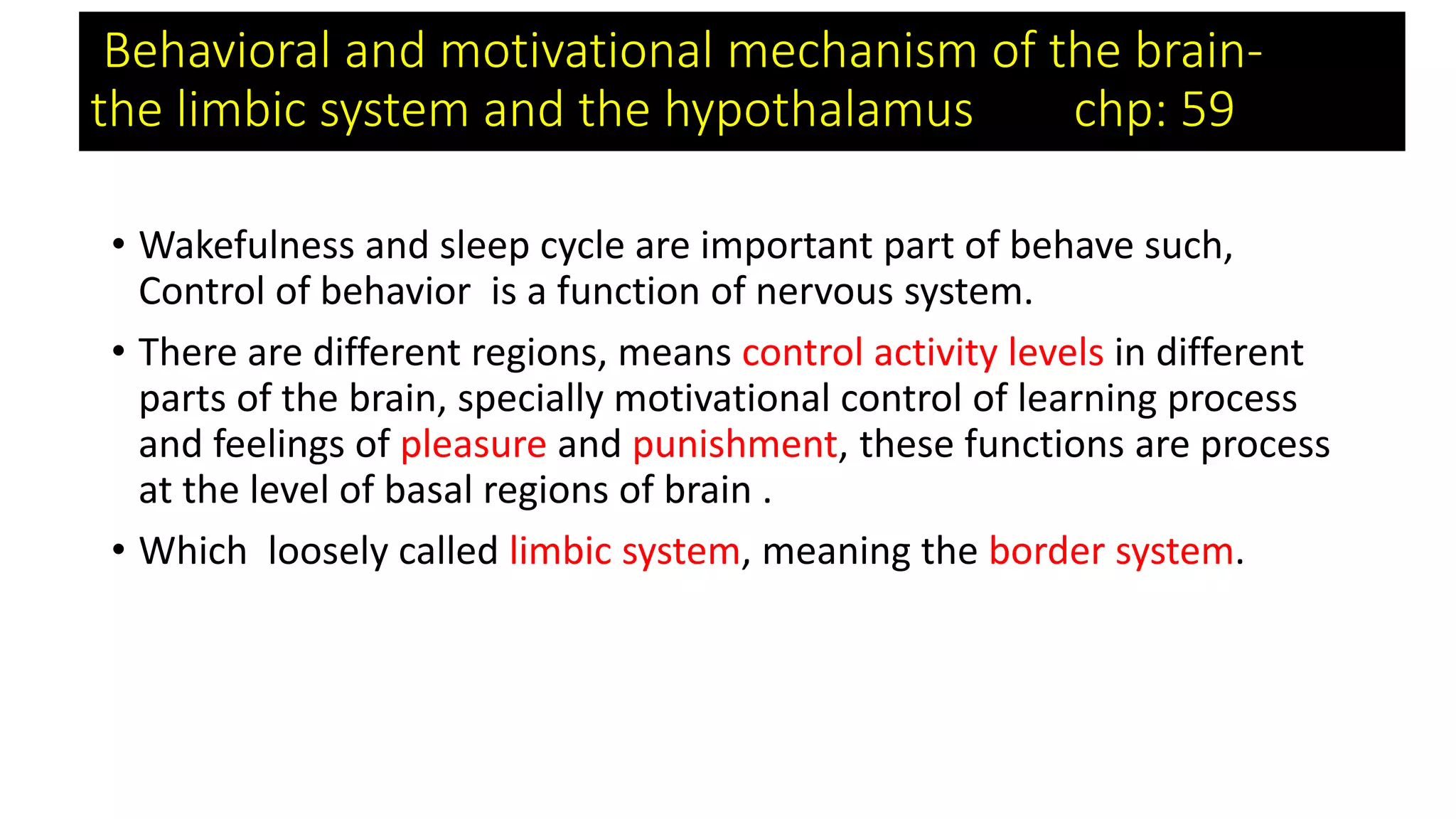 The document discusses the behavioral and motivational mechanisms of the brain, focusing on the limbic system and hypothalamus. It details how various brain regions control wakefulness, learning processes, and emotional responses through excitatory and inhibitory signals. Additionally, it describes the role of neurohormonal systems in regulating bodily functions and behavior, including the influence of sensory input on brain activity and the interplay between reward and punishment mechanisms.