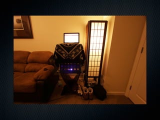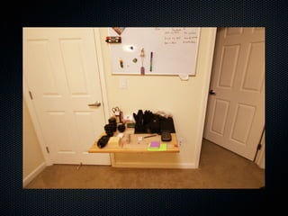 The document discusses applying behavior changes to improve health by changing one's environment. It describes how sitting less is associated with lower risk of early death and cardiovascular disease. It then details changes someone made to their home environment, such as creating a standing desk, moving snacks out of easy reach, and making their toothbrush more prominent, to support healthier behaviors. The results of implementing these changes are promising according to behavior guides.
