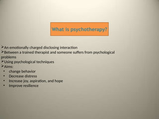 The document provides a comprehensive overview of behavior therapy, including its goals, techniques, and assessment methods. It emphasizes the principles of learning in understanding and modifying behavior, discussing various case studies and methods for measuring behaviors. The content also details the importance of behavioral assessment, different recording techniques, and the role of positive reinforcement in behavior modification.