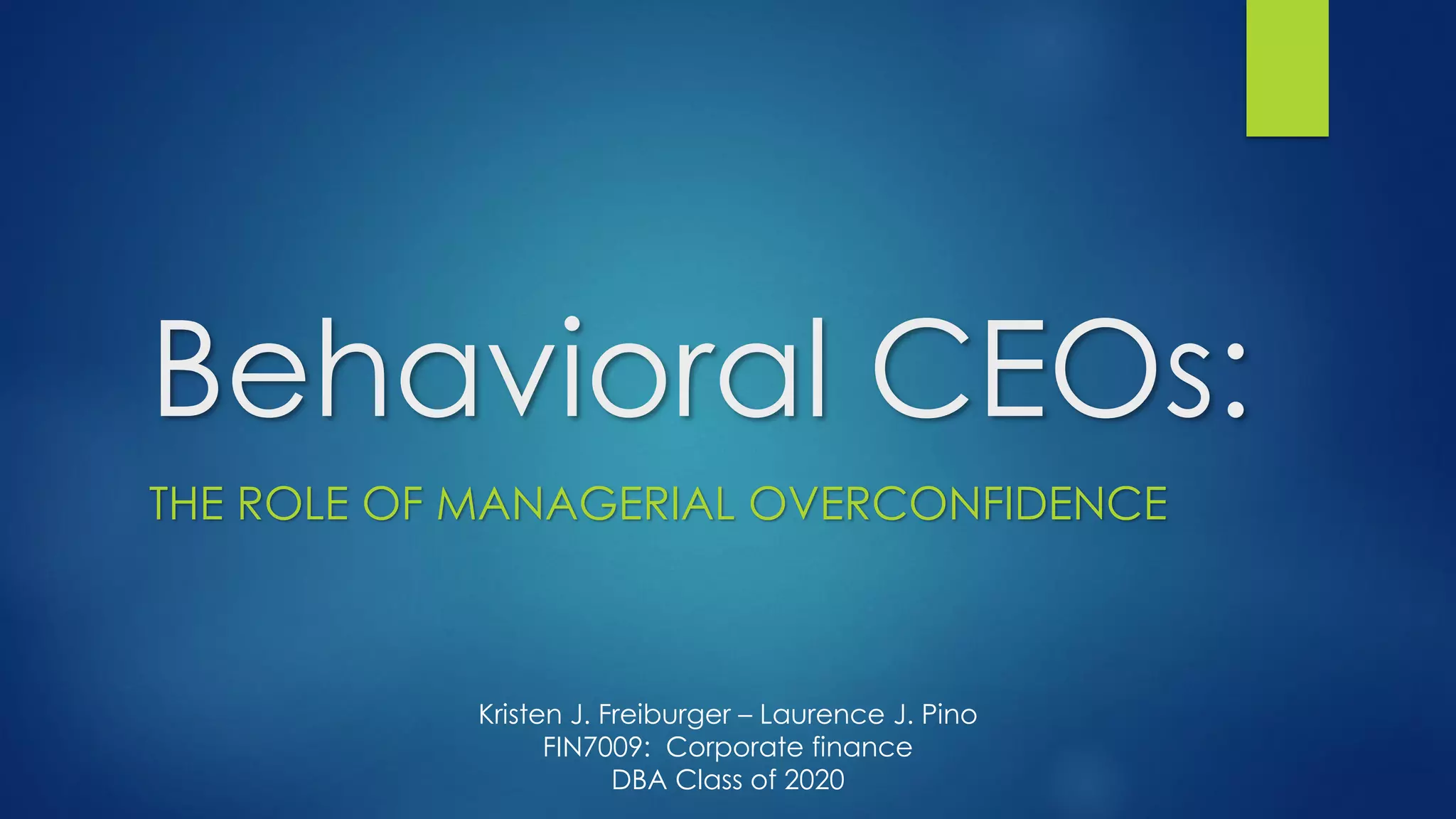 The document summarizes research on how managerial overconfidence can influence corporate investment decisions. Specifically, it discusses two studies conducted by the authors.