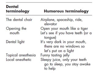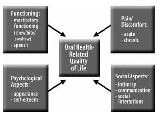 The document discusses behavioral dentistry, emphasizing the importance of understanding human behavior in preventing oral diseases and enhancing patient care. It covers various topics including the cultural competence of dental professionals, the impact of oral health on quality of life, and strategies for managing patient anxiety and pain during dental procedures. Key insights include the role of psychosocial factors in dental health and techniques such as hypnosis and biofeedback for improving patient experiences.