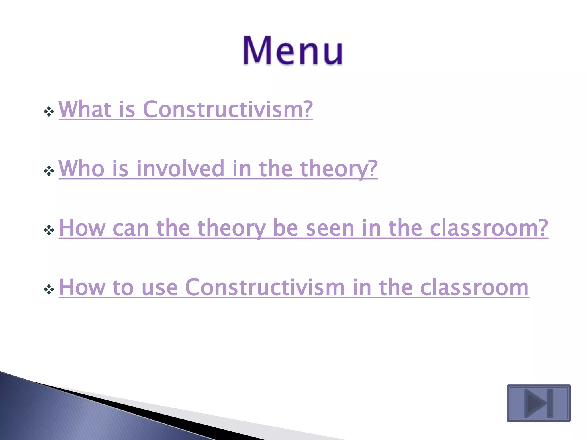 Constructivism is a learning theory where learners actively construct their own knowledge through experiences. Key figures who influenced this theory include Piaget, Bruner, Vygotsky, and Dewey. In the classroom, constructivist teaching focuses on hands-on problem solving and inquiry-based activities where students collaborate and reflect on learning. The teacher guides students to build knowledge instead of just receiving facts.