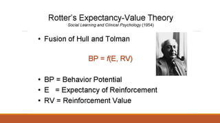 The document provides an overview of the behavioral (learning) approach. It discusses the major theories of learning put forth by behavioral psychologists, including classical conditioning proposed by Pavlov, operant conditioning by Thorndike and Skinner, and observational learning. It also outlines the key figures in the development of behaviorism from Watson to Bandura and Rotter. Finally, it discusses applications of behaviorism to education, including the use of reinforcement and punishment in the classroom.