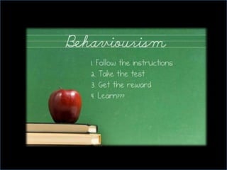 Behaviourism is a theory in psychology that focuses on observable and measurable behaviors as opposed to internal mental states. It views behaviors as being shaped by environmental factors through processes like classical and operant conditioning. According to behaviorism, all behaviors, no matter how complex, can be reduced to simple stimulus-response associations, and behaviors are learned through interactions with the environment rather than innate or through free will.