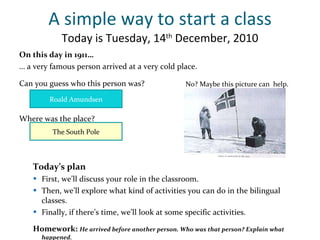 1) Discussing the teacher's role and possible classroom activities with the students.