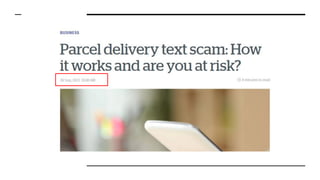 The document provides tips on being cyber aware and safe online. It discusses common hacks like social engineering, reputational attacks, and CEO scams. It highlights how hackers can mimic legitimate websites and send phishing emails and SMS messages. The document emphasizes being mindful of online activities, using strong and unique passwords, avoiding suspicious links and emails, not acting in haste, and discussing cybersecurity with others. Prevention through awareness and caution is key to staying safe from online threats.