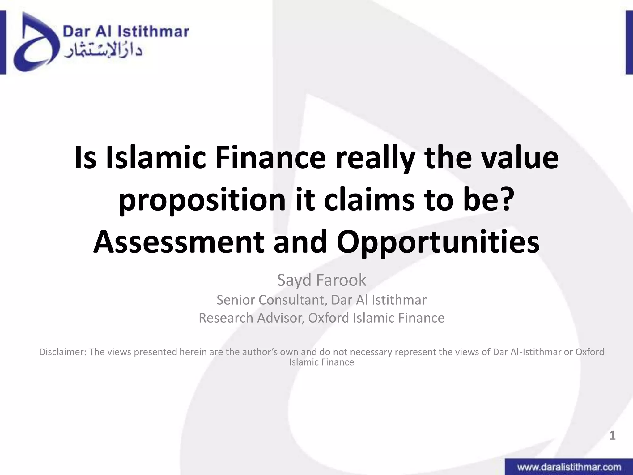 The document assesses the value proposition of Islamic finance, highlighting its growth trajectory, competitive advantages, and the significance of Shari'a compliance and social responsibility. It discusses the challenges and opportunities for the industry, emphasizing the need for innovation and differentiation to attract both Shari'a loyalists and conventional finance customers. The conclusion calls for a strategic response to enhance Islamic finance's appeal in a competitive global landscape.