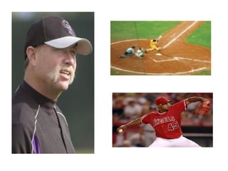 No béisbol olanzador intenta enviar a bóla a un compañeiro, que é o receptor, situado detrás do batedor, intentando que este non intercepte o lanzamento. A un batedor pódelo eliminar de varias maneiras: lanzando tres strikes, collendo a pelota bateada antes de que toque o chan, ou ben tocando a primeira base tendo a pelota antes de que esta sexa pisada polo batedor ou tocando un defensa ao batedor coa pelota cando este intenta chegar á primeira base. No ataque deben intervir todos eles bateando, pero pode existir un bateador designado (xogador especial que ás veces sustitue ó lanzador no seu turno de bateo). O terreo de xogo, ten como parte primordial un cuadrado denominado "cadro", e colocado sobre unha das súas esquina está a meta, chaamada en inglés "home" es que é o lugar onde se batea