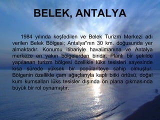verilen Belek Bölgesi; Antalya''nın 30 km. doğusunda yer