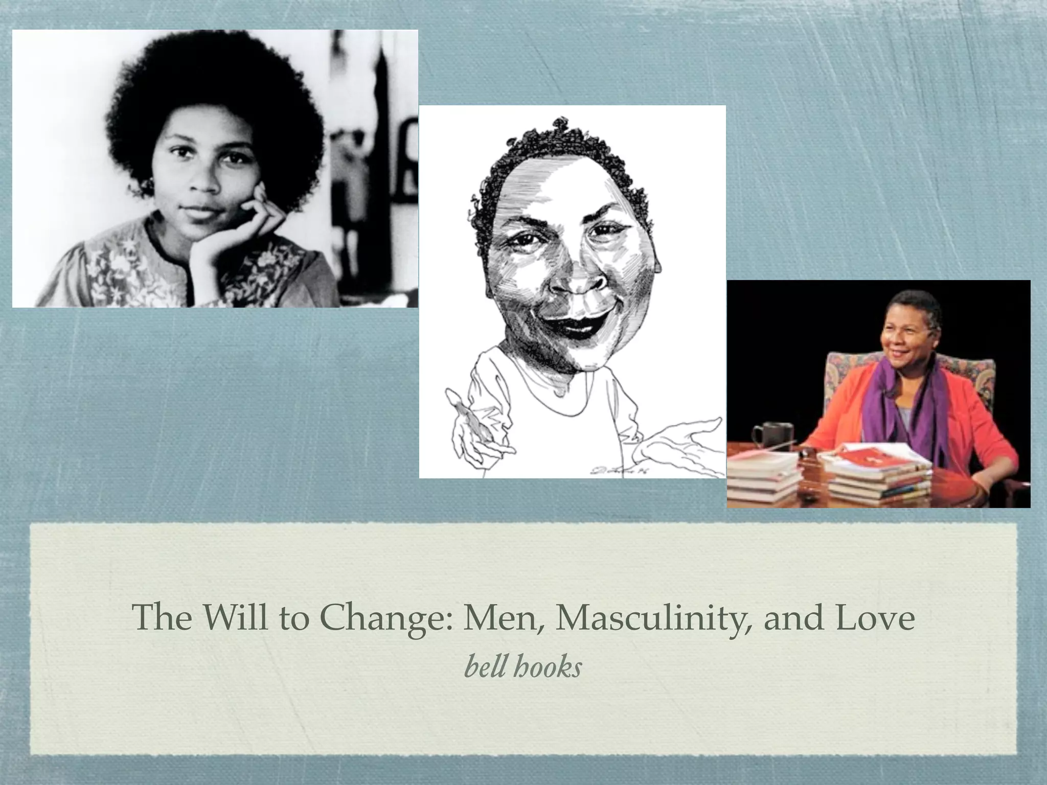 Hooks argues that patriarchy has damaged men by discouraging emotional expression and connection. This leads men to view relationships and reality in problematic ways and causes issues in how men manage relationships. However, change cannot come through societal reforms alone but must occur through individual expressions of love on a daily basis. She examines how patriarchy is taught through violence which disconnects boys from their emotions. Hooks advocates for a feminist vision of masculinity that demands rights for men and loves them. She believes exchanging power dynamics for meaningful relationships and a partnership model can help men reconnect with their inherent capacity for relating to others.