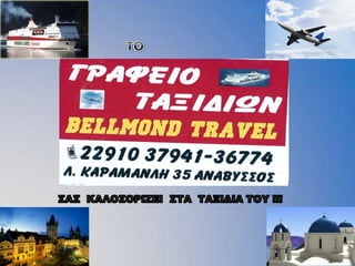 BELLMOND TRAVEL WWW.BELLMONDTRAVEL.GR 22910 37941 36774 ANAVISSOS KARAMANLI 35