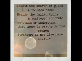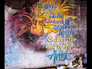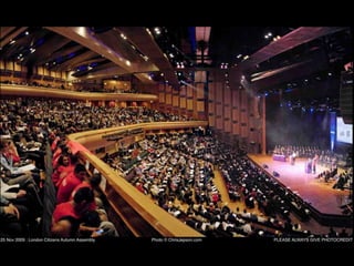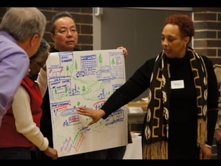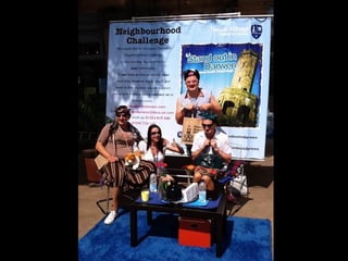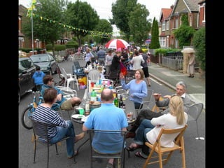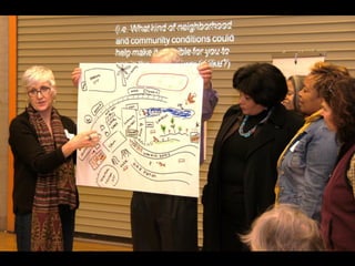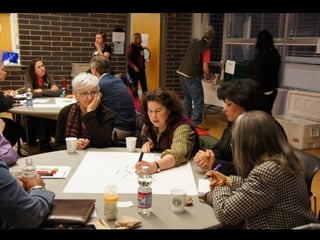 This document outlines strategies for unleashing community power by mobilizing local assets. It discusses tapping into the gifts of individuals, voluntary associations, the built and natural environment, local economy, culture and identity, and local agencies. Specific tools are presented for mapping assets, identifying connector leaders, creating bumping places, being welcoming, forming block/building action groups, creating a common vision, and using open space technology. The overall message is that every community has untapped strengths and that a process of discovery, connection and action can strengthen communities from the ground up.