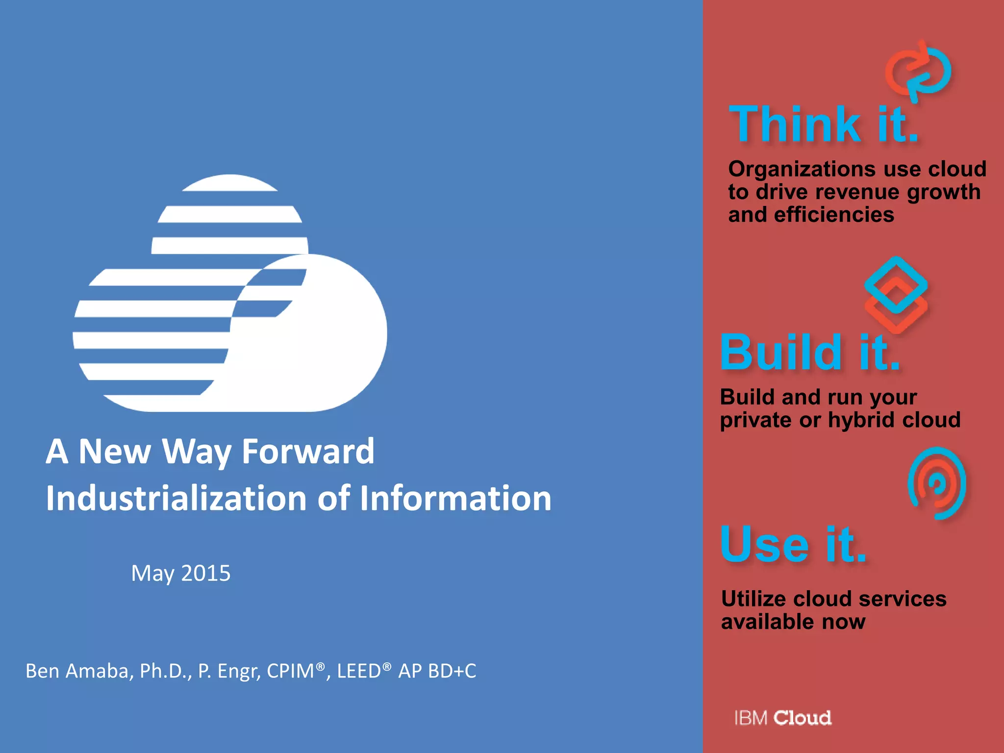The document discusses the industrialization of information through cloud computing. It notes that many lessons from manufacturing are being applied to cloud data centers, which can be viewed as "information factories." The cloud allows organizations to drive revenue growth and efficiencies. Hybrid cloud computing should be examined as part of any technology strategy. Knowledge is cited as the biggest barrier to cloud adoption.