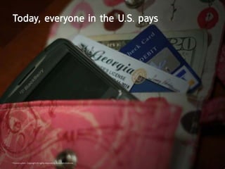 The document discusses how mobile payments using near field communication (NFC) technology will revolutionize commerce. It argues that as more smartphones and point-of-sale systems become NFC-enabled, the number of mobile payment transactions in the US will surge. Within 6 months of the rumored NFC-capable iPhone 5 release, the author predicts there will be 250 million mobile payment transactions. This mobile payment movement will change how consumers buy things and require marketers to adapt their strategies to take advantage of new opportunities for location-based offers, mobile coupons, and loyalty programs.
